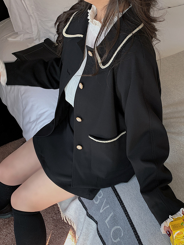 早秋女裝韓版簡約百搭寬松學生翻領(lǐng)排扣襯衫